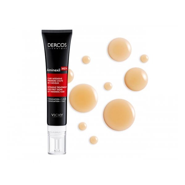 Anti-Haarausfall (erblich bedingt) Wirksamkeit nach 6 Wochen*: Frische und leichte Textur. Zur Stimulation des Haarwachstums und Beruhigung der Kopfhaut. Fettet und glänzt nicht. Ideal in Kombination mit dem Vichy Dercos Vital-Shampoo Men.