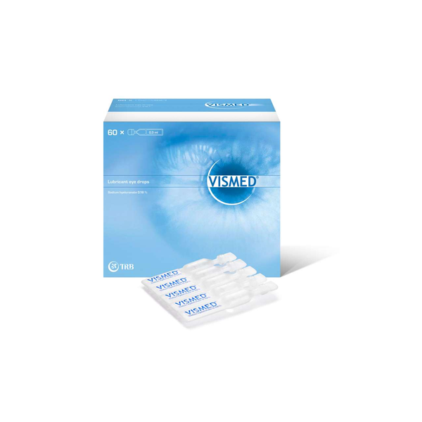 Verschlusskappe vom Einzeldosisbehälter abdrehen. Soweit nicht anders empfohlen, nach Bedarf 1 – 2 Tropfen VISMED® in den Bindehautsack träufeln. Durch Lidschlag wird die Lösung verteilt und bildet eine transparente und haltbare Flüssigkeits schicht auf den Oberflächen des Auges. VISMED® kann auch während des Tragens harter oder weicher Kontaktlinsen angewendet werden.